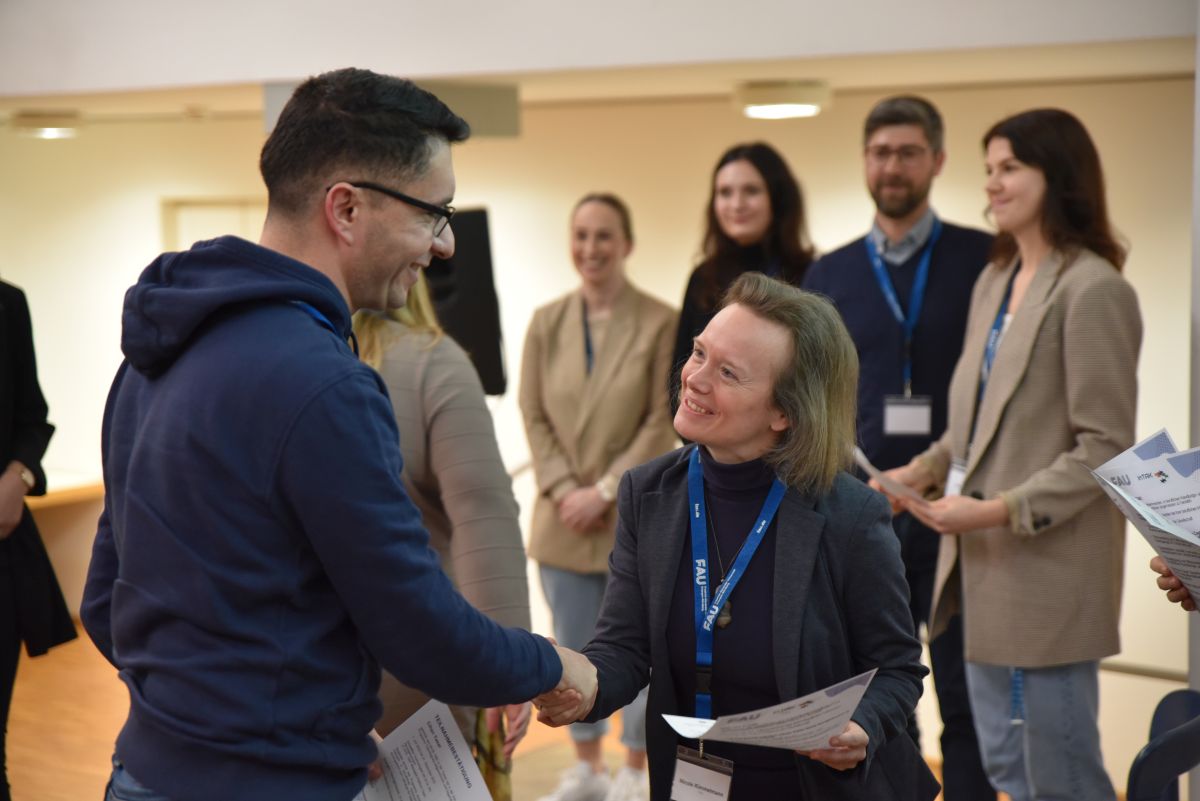 Das Projekt, das von der Friedrich-Alexander-Universität (FAU) in Kooperation mit den Unternehmen Siemens, adidas und SCHAEFFLER initiiert wurde, stellt sich zwei bedeutenden aktuellen gesellschafts- und wirtschaftspolitischen Herausforderungen gemeinsam entgegen. Es setzt sich zum einen für die Integration von Menschen mit Fluchthintergrund ein und zum anderen für die Bewältigung des Fachkräftemangels. Die Abschlussveranstaltung, bei der die ersten Teilnehmenden ihre Zertifikate erhielten, fand in der Mensa Insel Schütt in Nürnberg statt.
